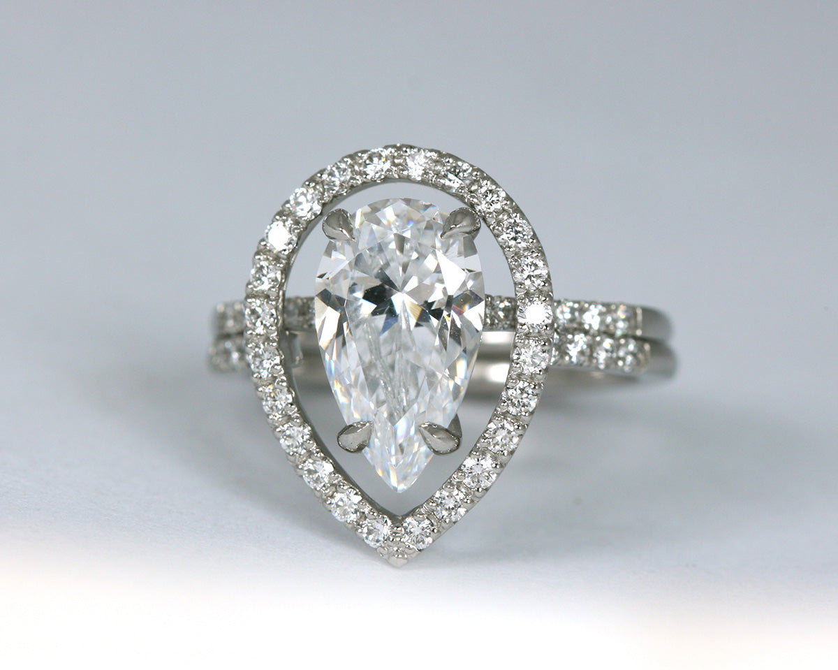 Pear Cut Diamond Halo Stacking Engagement Rings
