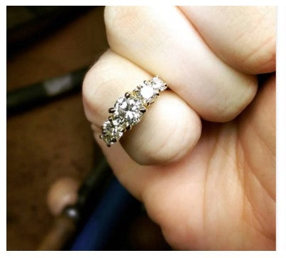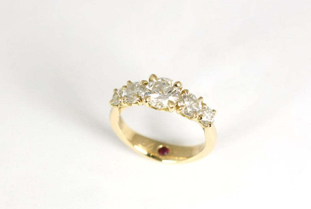 A customer was given 5 diamonds from his mother for use in his engagement ring, and we helped out by creating a bespoke 18ct yellow gold engagement ring with gothic claws...